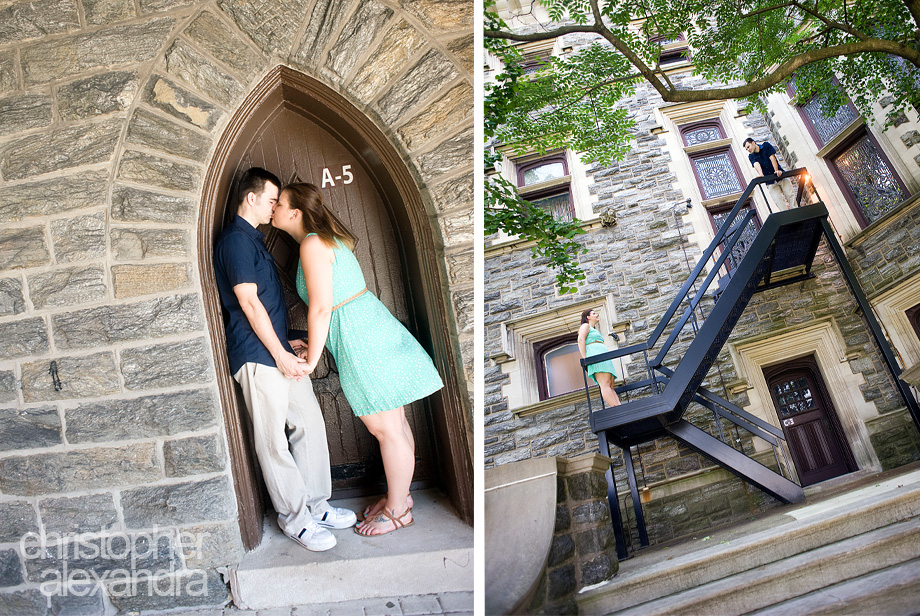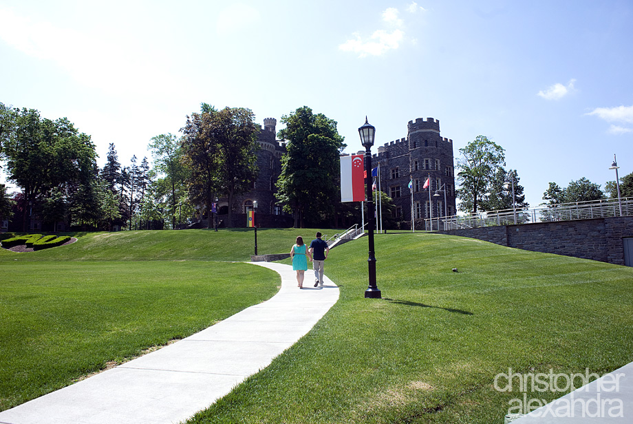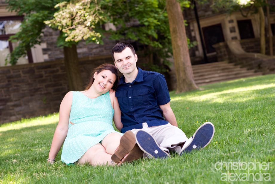 Ashley participated in one of our promotional drawings on facebook and won a photo session. She and Zach decided to use it for another set of engagement photos -great choice! – and we met up at Arcadia University in Glenside to do the shoot. The campus was empty with all the students being away for the summer and we pretty much had this awesome place to ourselves. Glorious architecture and a cute couple – this engagement session turned out nothing short of beautiful!