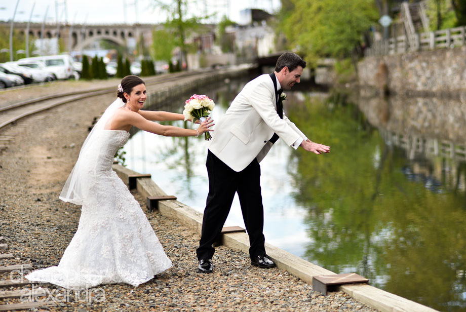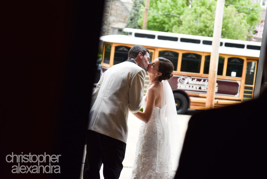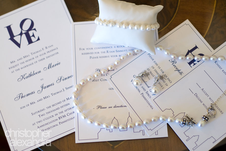 Kate and Tom worked out every little detail of their wedding day – from their stylish wedding day attire, to bridesmaids’ matching shoes, to Kate’s favorite cherry coke on hand, to little airplanes that served as part of the travel theme at the reception, but also came handy as a cool prop for the ring shot! Guests joked that Kate and Tom must have had something to do with the weather that day, too, because it was an absolutely gorgeous spring day. Flowers and trees bloomed everywhere we went, providing an amazing background for photos all day long. Following a beautiful church ceremony, we had a blast with Kate, Tom, and their wedding party, taking photos for a couple of hours at all the special for the couple places in Manayunk; we even stopped by the restaurant where they had their first date! And you don’t have to take our word for it when we say the reception was a party like no other – these pictures – and it was hard to pick our favorites – speak for themselves. Congratulations to Kathleen and Tom!