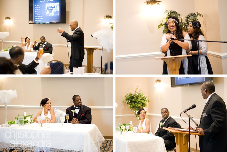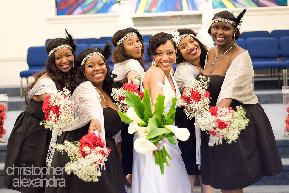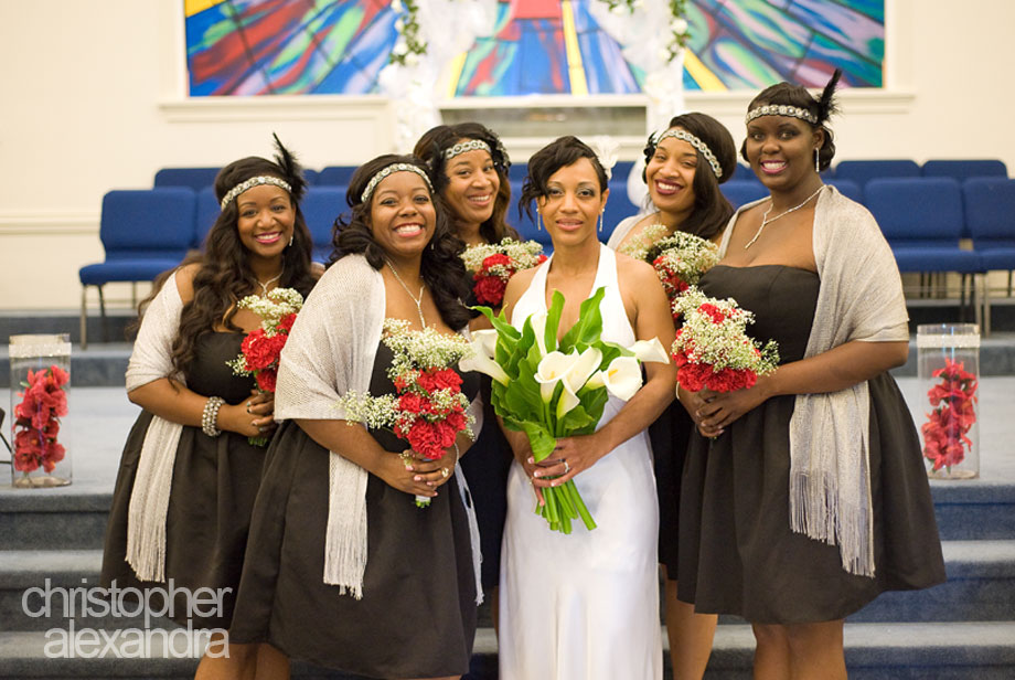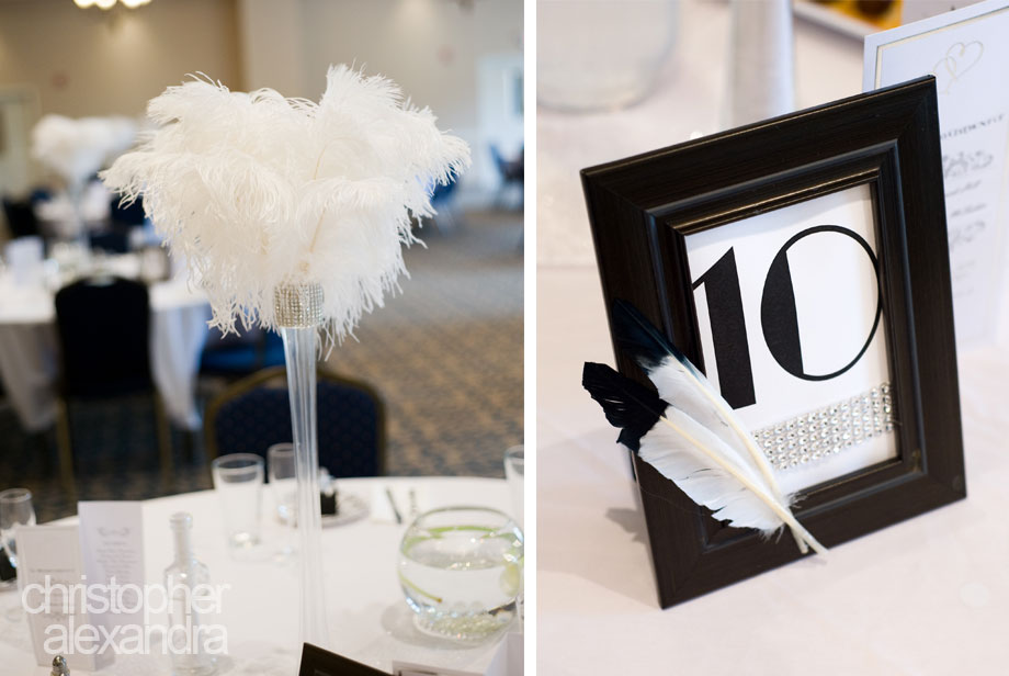 Tamara and Aaron’s wedding was just so special – simple, fun, beautiful, and with a unique twist. The bridesmaids wore feathered headpieces, the bride wore a dress so very slim, simple, and elegant, and the reception featured timely artifacts, jazz music, and feathery center pieces. Yes, the wedding theme was 1920s and every little detail of the day was so well planned, it all came together so elegantly and just as this awesome couple imagined. We had such a great time with Tammy, Aaron, and their guests we didn’t want the day to end. Congratulations to Tammy and Aaron!