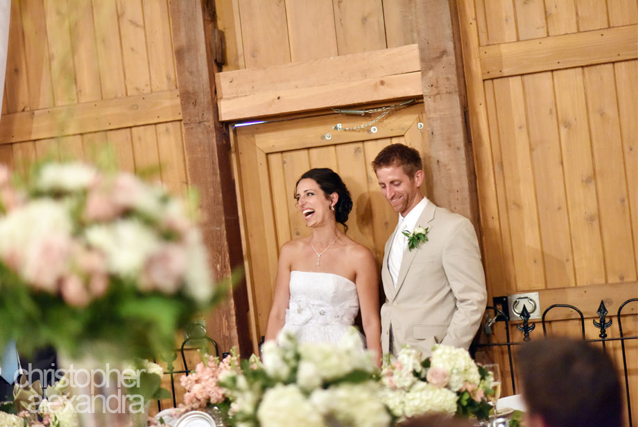 A very old church, a beautifully decorated barn, and a happy gathering of friends and family. What else would a true country wedding need? Add a beautiful couple, so in love and so devoted to each other, and a wedding day is bound to be nothing short of amazing. Chelsea and Andrew tied the knot in the New Goshenhoppen United Church of Christ; the ceremony was so spiritual and uplifting, we could feel all the joy the couple and all of the friends and family gathered held in their hearts. A family barn in Harleysville, where everyone headed to celebrate the happy occasion, was decorated with flowers, handmade decorations, and had so many special details – all to make for a setting that amazed everyone present. What a wedding! Congratulations to Chelsea and Andrew!