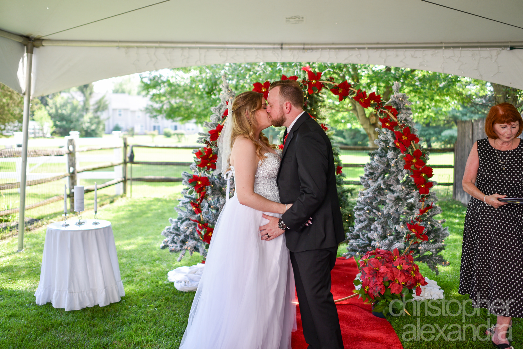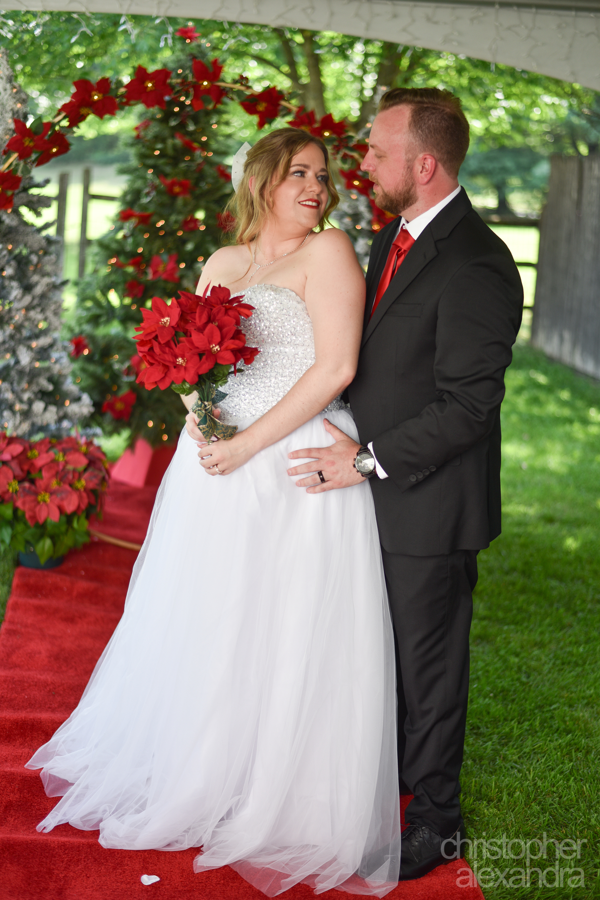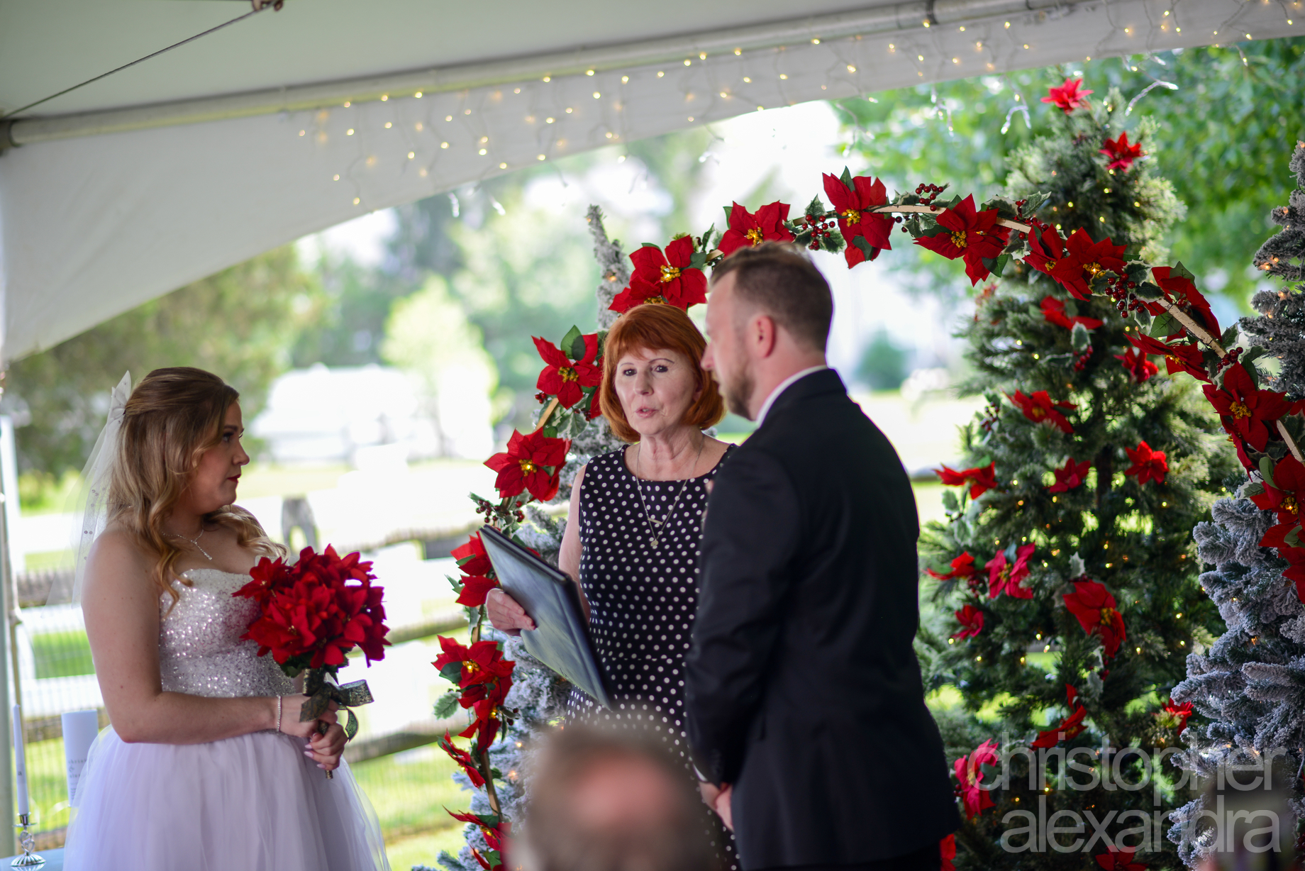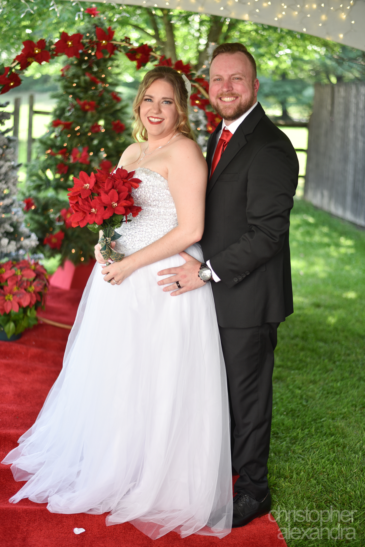 Alexandra and Christopher’s wedding was an intimate celebration of love and laughter, wrapped in the cozy charm of “Christmas in July.” Their home ceremony set the perfect tone—small, heartfelt, and surrounded by the people who mean the most to them.