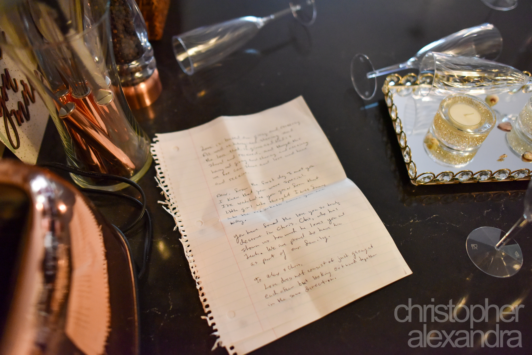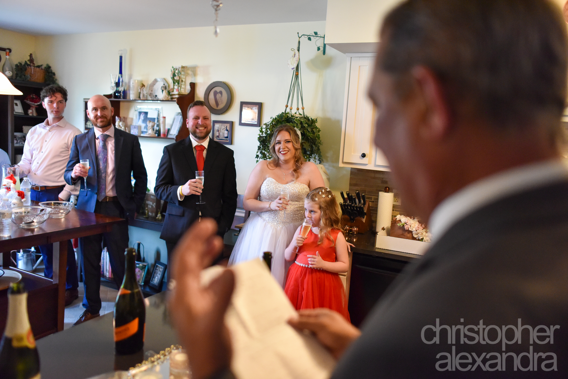 The evening was filled with warmth in every sense—moving toasts, laughter that carried across the room, and great food that made the intimate gathering feel like the most magical of wedding days. From Alexandra’s radiant smile to Christopher’s tender glances, every moment spoke to their love and the closeness of the day.